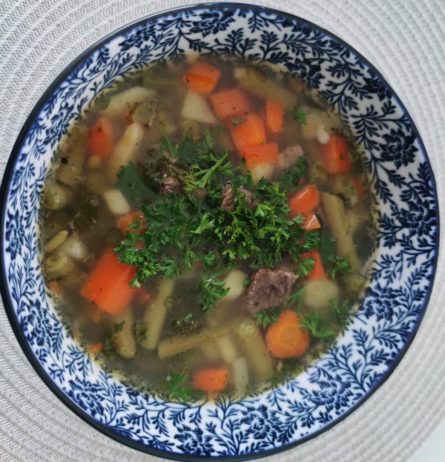 4. Asi po 5 minútach varenia pridáme fazuľu a mrkvu a dovaríme až do konca. Dochutíme soľou, korením a octom.